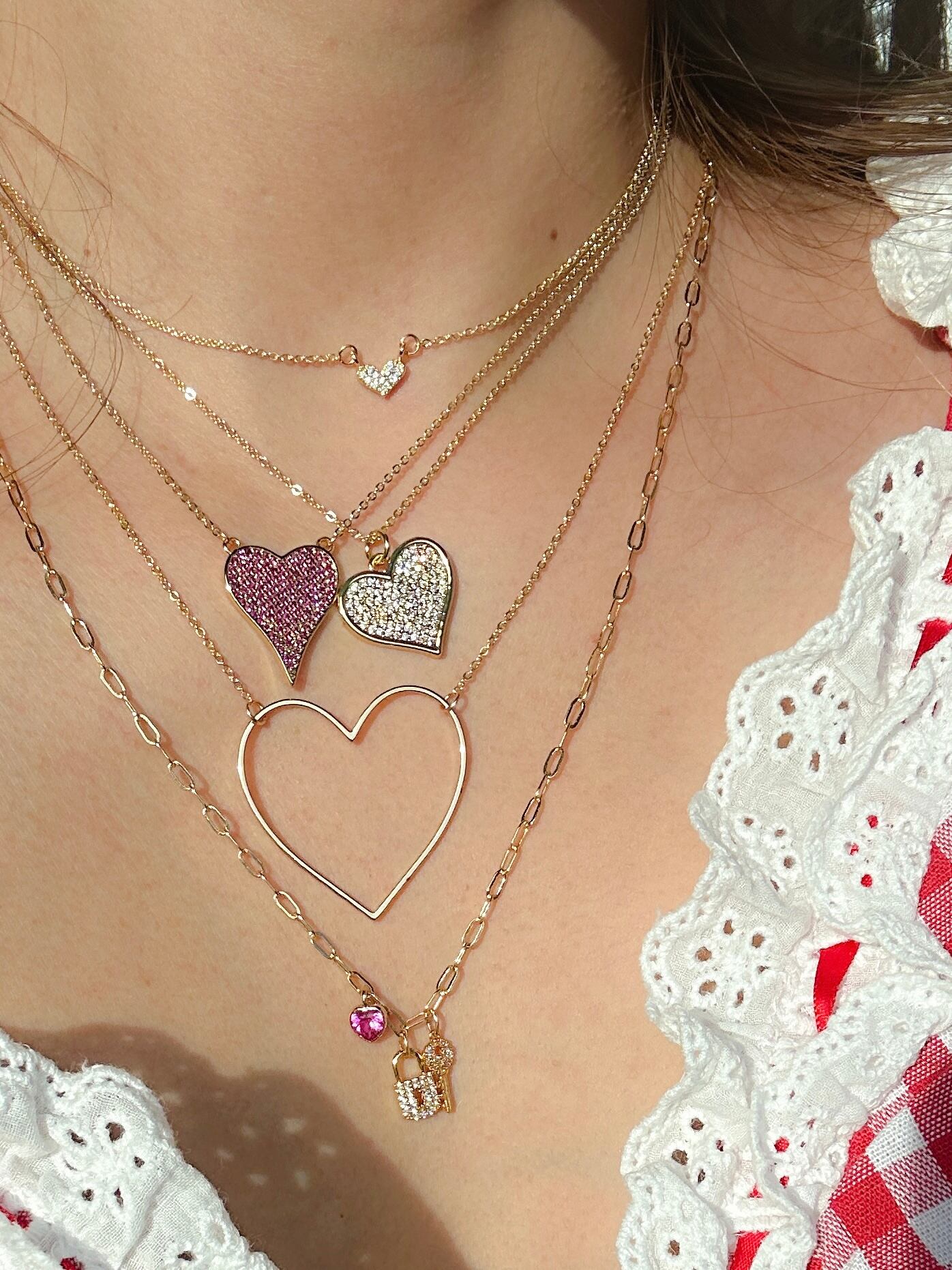 形違いの様々なハートの中でも、このパヴェシリーズはキラキラのジルコニアが胸元を輝かせてくれます✧・゚: *✧・゚: